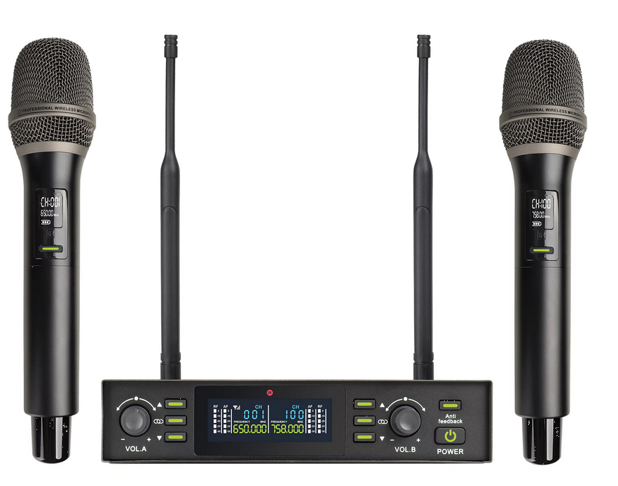 Axelvox DX800FK — двухканальная цифровая радиосистема высокого класса с DSP, специально разработанную для вокала, выступлений и работы там, где важен чистый и надёжный сигнал.