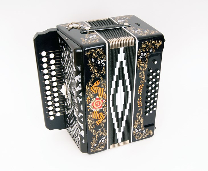 Трехголосая гармонь, звукоряд основан на неполной хроматической гамме.